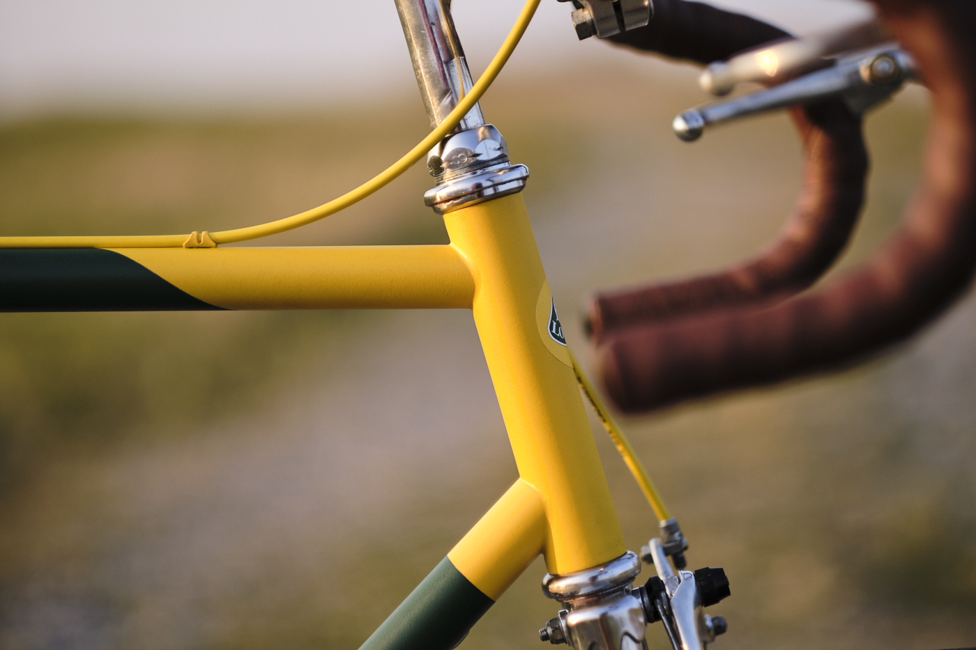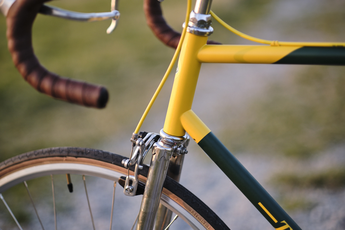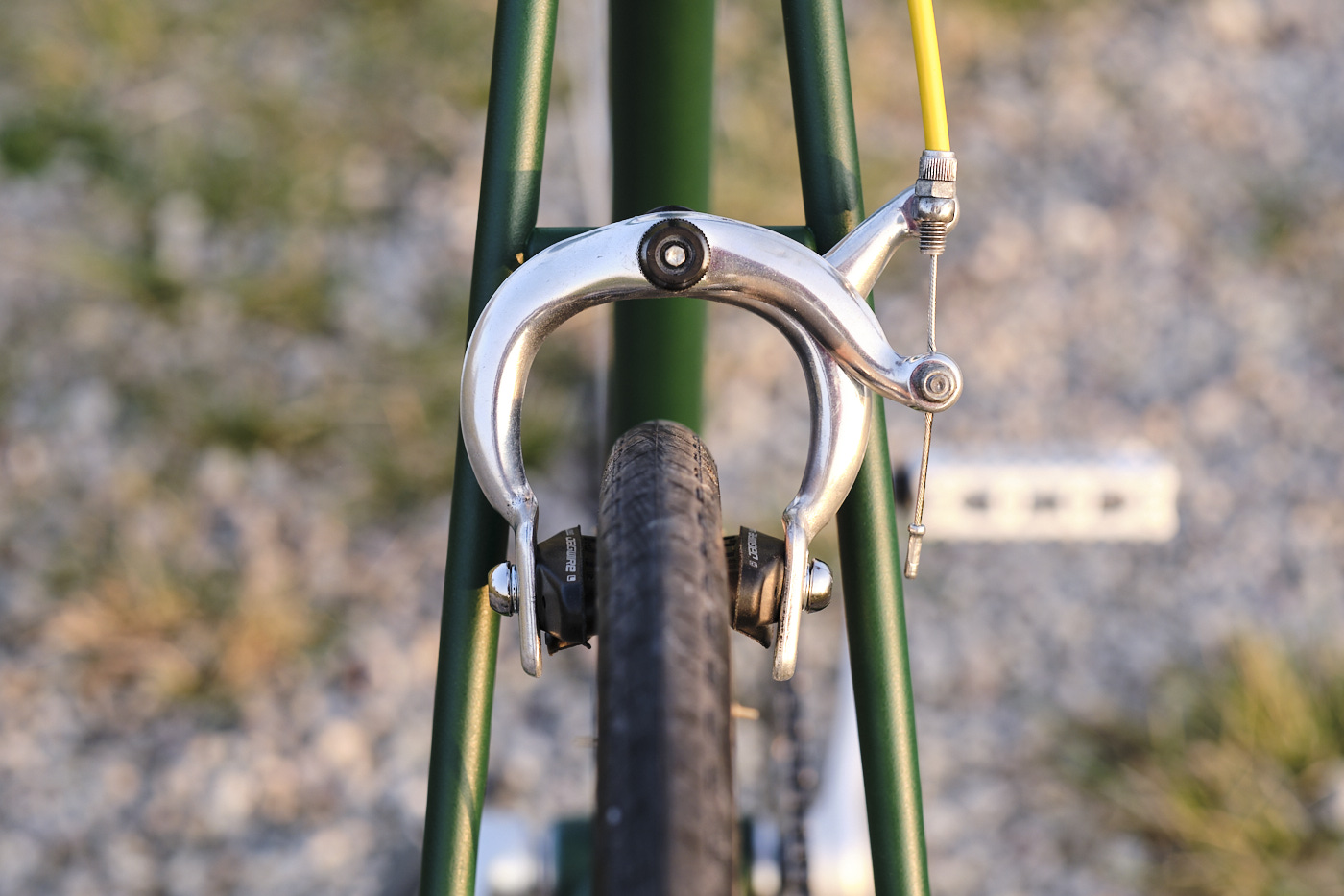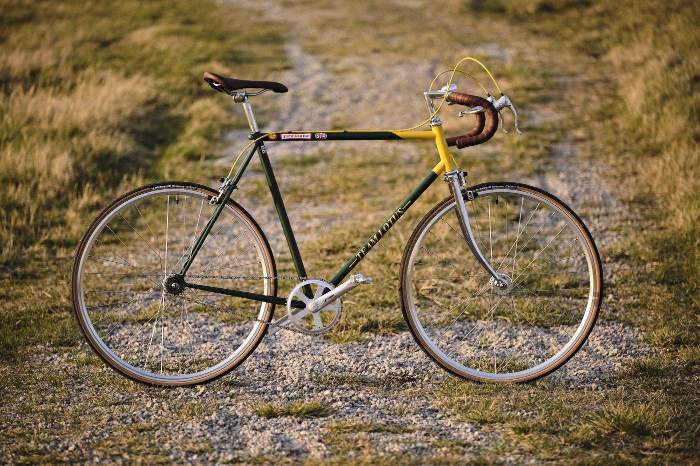 I had been thinking for a while about building a bike myself. With a classic Peugeot bike frame from the late ’80s, I began building a single speed. The design is inspired by the 1950s Lotus F1 cars, featuring the iconic British Racing Green with yellow accents.